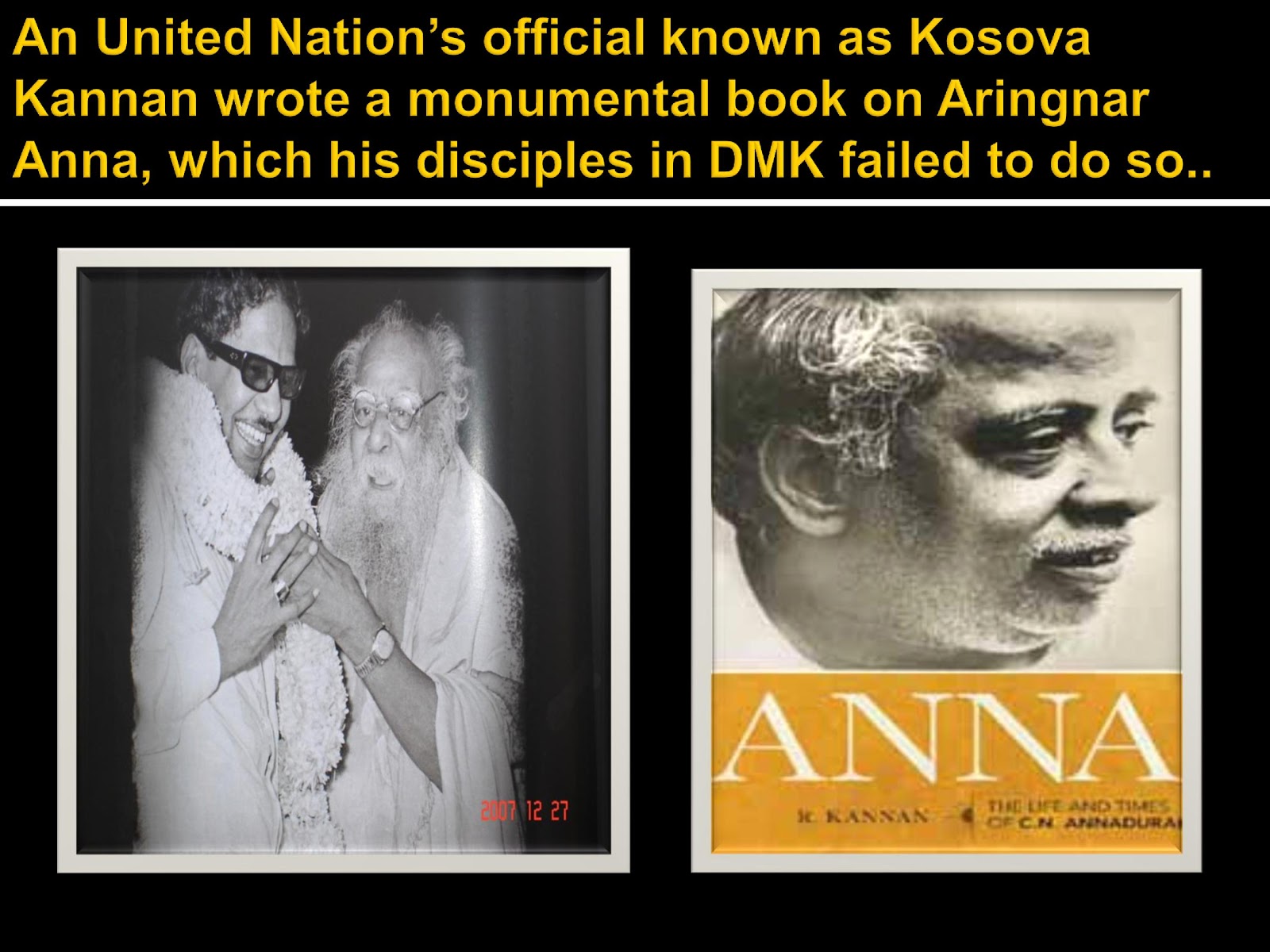 without it. Poet Kannadasan, a dissident leader recorded that Anna feared